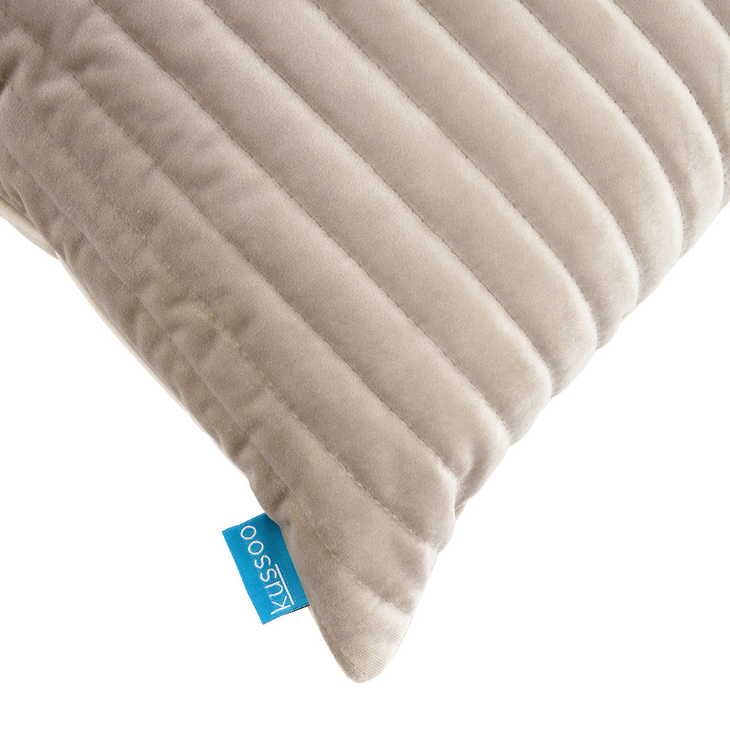 Kussen fluweel streep champagne 50x50 cm is een fluwelen kussen met een grafisch streep patroon. Het fluwelen sierkussen heeft zowel aan de voor- als achterzijde van het kussen een doorgestikt patroon.